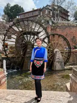 1. Lijiang Ancient Town Waterwheel: The “face” of the ancient town! Take photos early in the morning when there are fewer people. The waterwheel turns with blue tiles and white walls behind it. Stand next to it in a dress for a full burst of energy~