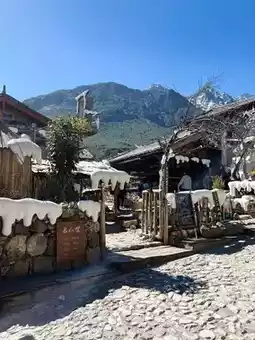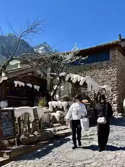 🛖 Yuhu Village, also known as Suzhou Village, is located at the foot of Jade Dragon Snow Mountain. This village is built entirely of stone, with its houses and streets offering a unique character. The weather is cool and breezy all day long. There are cafes, shops, restaurants, and hotels, but they aren't as numerous as in the larger old towns, making the atmosphere more tranquil.