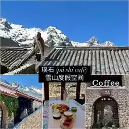 ☕ 璞石 (Pú Shí Café) – คาเฟ่ใน Yuhu Village มีมุมหลังคาให้ขึ้นไปถ่ายรูป วิวสวยมาก เห็นภูเขาหิมะชัดเจน