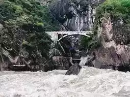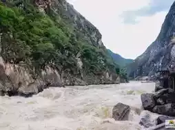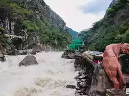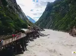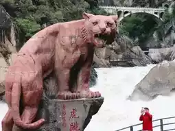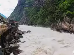 One of the most spectacular and thrilling canyons in the world 🇨🇳, this sheer cliff face contrasts with the raging Yangtze River 🌊✨. Located where the river flows between the 5,596-meter-high Jade Dragon Snow Mountain and the 5,396-meter-high Haba Snow Mountain, the gorge is a rapid riverbed beneath 2,000-meter-high cliffs. Legend has it that a tiger escaped a hunter by leaping across the river at its narrowest point (25 meters wide), hence the gorge's name. Tiger Leaping Gorge is one of the deepest river canyons in the world. Escalators are available for 100 yuan each way up and down.