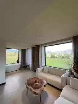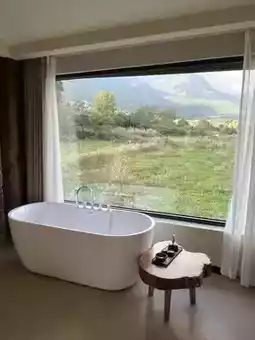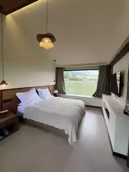 The room features extra-large floor-to-ceiling windows with scenic views, so the first thing you see every morning is the distant mountains! The bedding is comfortable and warm, with every detail reflecting the owner's care.
