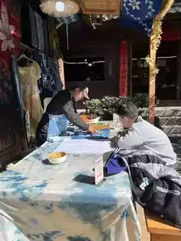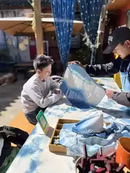 Brought my boy to this iconic tie-dye workshop in Baisha Ancient Town, and wow, it's such a vibe! 😍 The whole process is super hands-on—our young instructor (a talented Bai-ethnic descendant) showed us each step, from setting up the base to picking the dreamiest patterns for dyeing. The best part? They use fermented plants 🌱 for their colors, a beautiful tradition that's been passed down for generations—so unique!