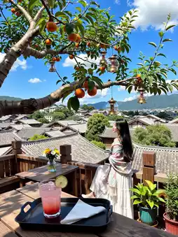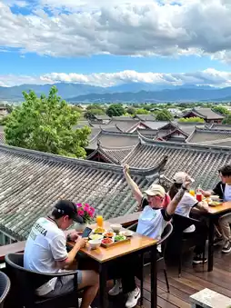Paired with Chinese-style buildings with flying eaves and green tiles, and Naxi ethnic-style residences