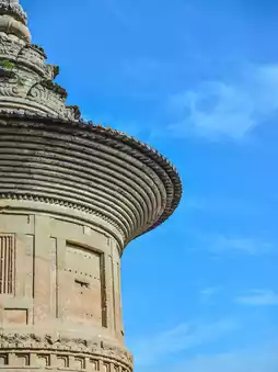 The Fanzhou Zen Master Pagoda was built in the second year of the Changqing reign of the Tang Dynasty (822). At first glance, it looks a bit simple and has almost no complicated carvings. The tower consists of three parts: the base, the body and the top. The base of the tower is circular, tapering slightly from bottom to top. The lower part of the tower is a waisted Sumeru pedestal, and above it is the tower body. There are 8 square brick columns around it, dividing the tower body into 8 rooms. There is a door on the south side. The tower room is hexagonal with a stepped caisson on the top. There are broken lattice windows on the southeast and southwest sides.