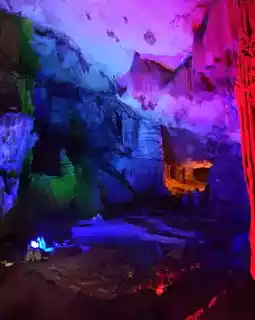 I visited the karst cave, and the moment I stepped inside, I was blown away 🤩! Colored lights illuminated the stalactites in red, purple, blue, and green 💜💙💚, creating a dazzling display. The stalactites came in all shapes—some like waterfalls, others like bamboo forests (I even saw a sign for "Guanyin’s Purple Bamboo Forest" 🙏). It felt like a dreamy underground kingdom, and Mother Nature’s craftsmanship was simply awe-inspiring 🐮. Every step left me in awe, and my phone ran out of battery from all the photos 📱~