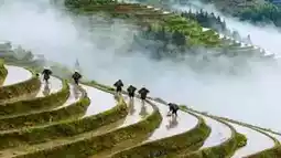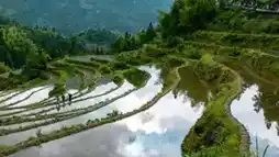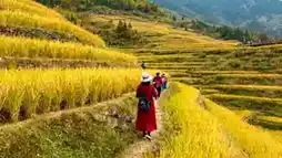 The scenery here is unbelievably beautiful! In the early morning, a thin mist covers the terraces, as if draping the earth in a light veil. Sunlight filters through the fog, creating beams of light—super dreamy! Looking down from a high spot, the terraces layer upon layer stretch from the foot of the mountain all the way to the top, like a masterpiece of nature, every inch of land carefully sculpted.