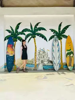 The mirrored pool, 3D American-style graffiti wall, and artificial sandy beach are perfect for photo ops.
