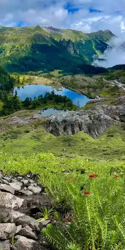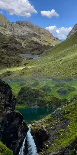 ✔️Checkpoint 1: Waterfall at Lake No. 3, the perfect spot for your first photo! The clouds usually dissipate after 10am, revealing breathtaking views.