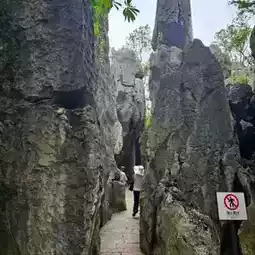#chinatravel Exploring Shilin Stone Forest feels like stepping onto another planet. The rock formations are super weird in the coolest way, like giant stone trees growing out of the ground. I didn’t really expect to be so into rocks, but walking through these narrow paths with tall spiky stones towering over you is kind of wild. Some parts are super quiet and feel like a maze, while other spots have tour groups and photo ops.