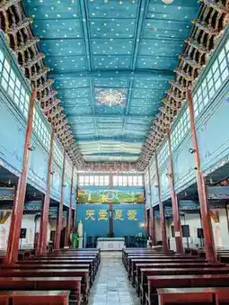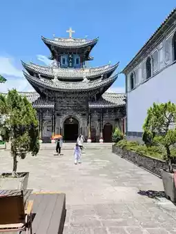 Dali Catholic Church, located in the picturesque town of Dali in Yunnan, is a striking blend of traditional Chinese architecture and Western ecclesiastical design. The church features elegant stained glass windows and a peaceful interior that invites contemplation. Its serene surroundings, with views of the nearby mountains, create a tranquil atmosphere for visitors and worshippers alike.