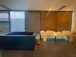 Let's talk about the hardware facilities. Each room here has a private hot spring. After climbing the mountain, taking a private hot spring can wash away the fatigue. The toiletries are from Bulgari, and there is also a tea room and a coffee room for a short rest.
