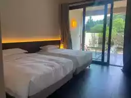 We stayed in a courtyard suite, which is about 100 square meters. The little ones walked around, and the kids were very happy. When you open the French window, you can see the courtyard. The butler thoughtfully put Ai Xiang in the courtyard, and there were no mosquitoes all night. When you open the window in the morning, the mountain air you breathe is very healing.