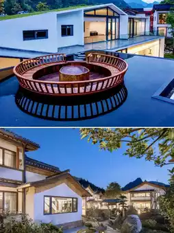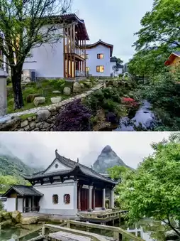 The settlement uses "landscape as the canvas, architecture as the brushstroke," blending the classical aesthetics of Hui-style white walls and black tiles with modern minimalist design. The designer incorporates Taoist philosophy, cleverly integrating courtyards, streams, and gardens, combining the Zen of Chinese courtyards with the wild luxury of cave houses and treehouses. Every floor-to-ceiling window is a frame capturing the sea of clouds, bamboo forests, and streams as flowing murals inside the rooms.