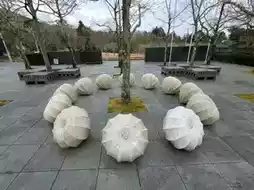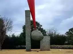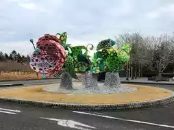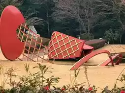 The taxi fare is 3,500 yen. I give the driver 10,000 yen and ask him to return by 4:30 PM. I spend about 45 minutes exploring the outdoor art museum. It resembles the Hakone Open-Air Museum but is smaller in scale, focusing on outdoor artworks.