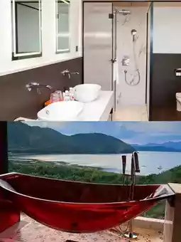 The washbasin resembles the shimmering ripples of the lake, each line flowing with dynamic rhythm. The toilet, quiet and dignified, stands like a faithful guardian by the lake, protecting this tranquil beauty.