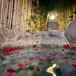 "Lotus Soup" pools surrounded by water lilies! Perfect for evening soak with floral views