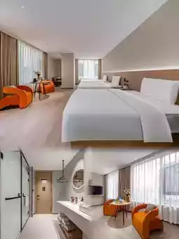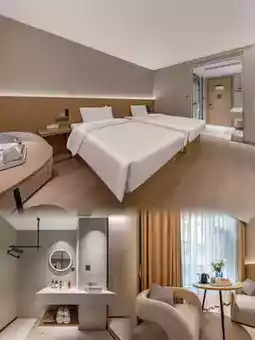 The hotel is located at 47 Fuxin Road, Fenghuang Subdistrict, a 10-minute walk from the high-speed rail station. 🚗 There's no bustling commercial area nearby, and it's mostly an old neighborhood populated by locals. Snack shops and fruit stalls are just a short walk away. During an evening stroll, you can smell the aroma of cooking 🍲, which gives you a strange sense of homecoming.