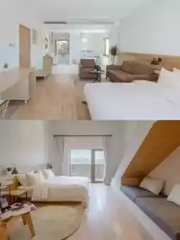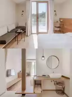 ❣️I think it is a white house, which is particularly conspicuous among the green mountains. The ceiling and floor are clean and simple, the windows are bright, and the tables, chairs and benches exude the aroma of wood. "