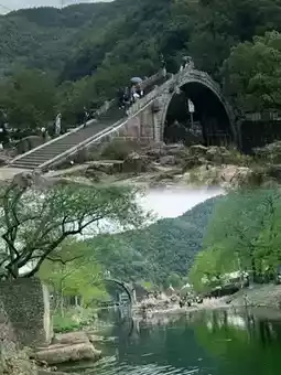 - The steep-arched single-hole stone bridge, first built in the Southern Song Dynasty, is shaped like a rainbow lying on a stream and is a landmark building in the ancient village. 📷Beautiful photos in the early morning when the mist is shrouded.