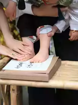 Rolling Away Misfortune Ceremony: Roll cooked eggs over "misfortune", say "May the baby always be smart and healthy"