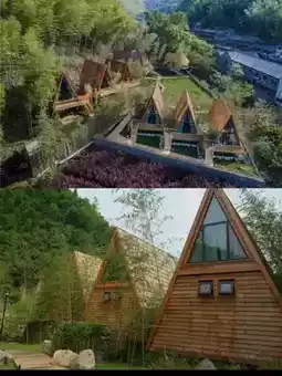 Can't keep it a secret anymore! This treehouse🏡 homestay is really super comfortable! Located at the foot of Siming Mountain⛰️, surrounded by bamboo forests🎋, a reservoir, and distant mountains⛰️, the triangular△ wooden houses🏕️ feel like stepping into a fairy tale world. It's about a 1-hour drive🚗 from Ningbo city center! Perfect for a homestay with 14 uniquely designed wooden houses, all nestled by the mountains and water🏞️, offering expansive views.