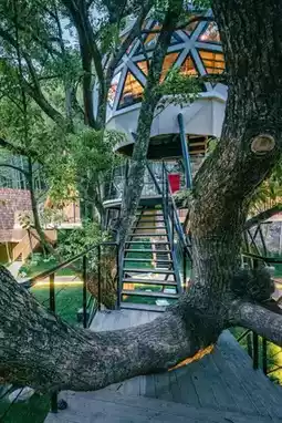 Our starry-sky treehouse was incredible! Perched 3 meters high on a tree trunk, climbing the wooden ladder felt like a special ritual. Opening the window revealed a sea of green, with rustling bamboo and birdsong waking us in the morning—way better than any alarm clock. The room was thoughtfully equipped: child-safe rounded furniture, a toy rocking horse, and even tear-free shampoo, making it super stress-free for parents. The rooftop skylight was the highlight—lying in bed stargazing at night, our kid couldn't stop chattering about the constellations.