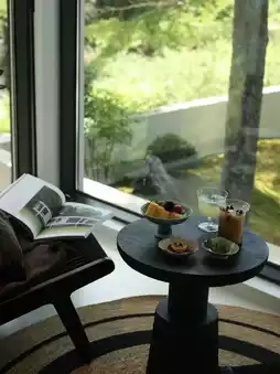 ▫️ At dusk, lounge on the treetop deck among three golden larch trees, savoring dinner or afternoon tea in the moment.