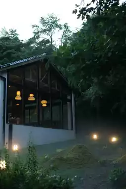 ▫️ Follow the misty stone path to the forest tea room—sip tea, snack on fruits, and listen to the mountain breeze as twinkling lights glow like fireflies.