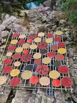 2. Autumn Drying Platform: Red chili peppers and corn form color blocks, perfect for aerial shots