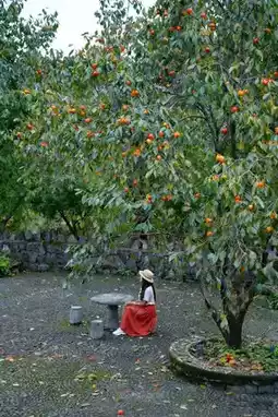 At the village entrance, many small stalls sell freshly picked persimmons.