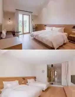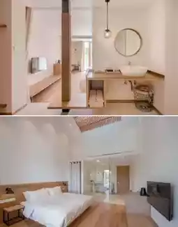 Gu She has a total of 22 guest rooms distributed across the four buildings. The interior design is extremely restrained, mainly using natural wood and cotton-linen materials, paired with industrial-style lighting to create a quiet and warm atmosphere. Some rooms cleverly incorporate playful elements like slides and swings, awakening childhood memories. Facilities include high-end bedding, air conditioning, LCD TVs, custom fragrance toiletries, and tea sets, all exuding quality.