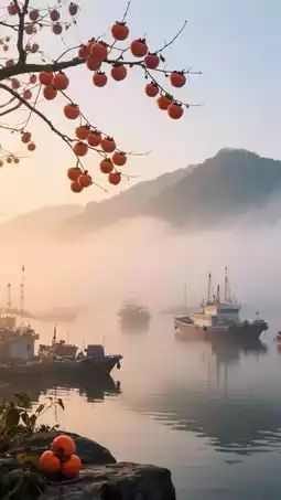 🌄 Late afternoon 4-6 PM (sunset glow on red persimmons)