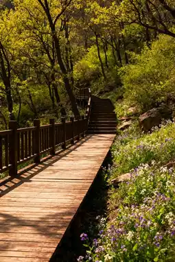 Dahongzhai's natural oxygen bar is truly healing 🌿! Follow the wooden boardwalk uphill, and you'll find wildflowers covering the mountains in spring and vibrant red maples blanketing the slopes in autumn. Midway up, you'll encounter a refreshing waterfall, with the sound of water mingling with birdsong — every photo you take here could be a wallpaper. The view from the summit is breathtaking, offering a panoramic view of the forest below. The trails are moderately challenging, suitable for both the elderly and children, with rest pavilions available for breaks.