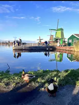 Zaanse Schans, a windmill village, is an easy 20-minute train ride from Amsterdam Central Station.