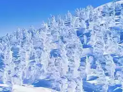 In winter, Tohoku, Japan, boasts a fantastical spectacle: the "juhyo" (ice-covered trees) of Zao in Yamagata Prefecture. From December to March each year, the summits of the Zao mountain range are blanketed in thick layers of ice and snow. The frigid northwest monsoon brings moisture from the Sea of Japan to the mountains, where it condenses on coniferous trees, forming a spectacular display of "snow monsters" through repeated freezing and accumulation. These trees, encased in layers of ice and snow, resemble bizarre sculptures stretching for kilometers, creating a breathtaking spectacle.