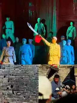 π Fire Dragon Steel Flowers: Performed at 7:30 PM daily at Revival Square, combining iron flower forging techniques with dance to showcase the intensity and heroism of the Battle of Taierzhuang.