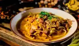 Downstairs is the Morning Blossoms Picked at Dusk Restaurant, with an average cost of 56 RMB per person—great value for money. Specializing in authentic Shandong cuisine, their signature Spicy Chicken features tender black-legged chicken paired with local thin-skinned peppers for a deliciously spicy kick. The Canal Carp, made with four-porthole carp from Weishan Lake, is smooth and free of any muddy taste. Other must-try dishes include Duck Egg with Vermicelli and Daylily Beef Noodles.