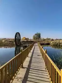 In Zepu Golden Lake Populus National Forest Park, a brightly colored small train winds its way through golden Populus euphratica groves. Following a curved track, it carries visitors past autumn-gilded reed marshes and meadows, as if heading into a dreamlike world filled with childlike wonder. Aboard the train, bathed in sunlight, one can admire the resilient beauty of the poplar trees and the unique wetland scenery, fully immersing in the serene and romantic autumn atmosphere of southern Xinjiang.