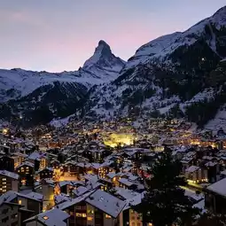 Zermatt is the best place to enjoy the breathtaking views of the Matterhorn and the natural beauty of the Swiss Alps. You can admire the Matterhorn, which inspired the shape of Toblerone, travel by Swiss train, and enjoy the tranquil night view of the town in the evening. Don't miss the stunning views from Gornergrat and Klein Matterhorn. Arriving before sunset and overlooking the town of Zermatt as it gets dark will be an unforgettable experience.