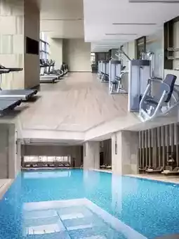 3β£ The well-equipped fitness center is open 24/7, featuring treadmills, strength-training equipment, and a yoga area. The indoor heated pool with crystal-clear water is perfect for relaxation.