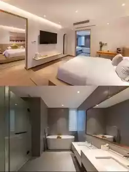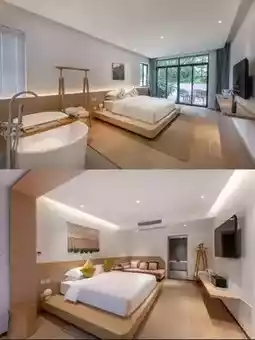 As soon as I stepped into the hotel, I was attracted by its unique design. The hotel is inspired by tropical islands, with every detail revealing a perfect blend of nature and modernity. My room faces a tranquil lake; waking up in the morning and drawing the curtains, I see mist swirling over the lake, as if in a fairyland. The room’s decor is simple yet cozy, with wooden furniture paired with soft lighting, making it especially comfortable.