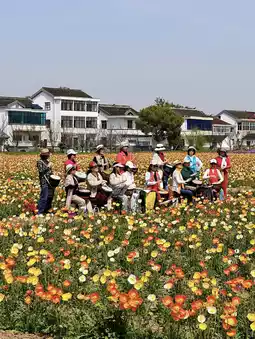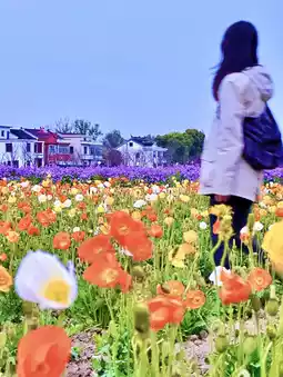 ✅ Poppy flower sea + colorful rapeseed flower fields + purple dreamy February orchids + pink and white cherry blossoms along the way + lush green wheat fields + Shazhou Youhuang intangible cultural heritage
