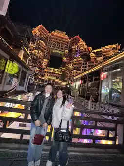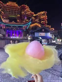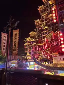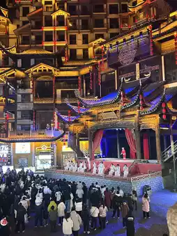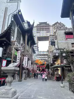 This building is known as the 'gate of heaven' and has beautiful lights all over the city. There are 7-8 shows to watch, so beautiful it's like something out of a Chinese movie. The 5D light and sound show is so amazing. I highly recommend going in. There's food inside. It feels like you're walking around an ancient Chinese city.