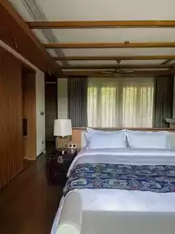 Step into the hotel, where wooden architecture blends seamlessly with the landscape. The courtyard features babbling streams and swaying flowers. Each of the 24 uniquely designed guestrooms boasts floor-to-ceiling windows framing breathtaking mountain views. Wake to birdsong at dawn, with misty peaks outside your window; fall asleep under starlight and cricket serenades, complemented by smart amenities and premium bedding for the perfect balance of comfort and nature.