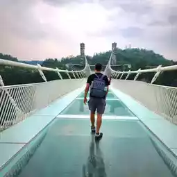 - second spot is the infamous #zhangjiajiegrandcanyonglassbridge - a big suspended bridge over the beautiful Zhangjiajie Canyon. It supposed to be scary. It wasn’t. The canyon view is wonderful, glass bridge, a little less.