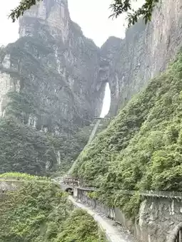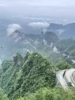 At the mid-station of Tianmen Mountain's Route B, where you can board the cable car bus. As soon as you get off the bus, you'll find yourself snapping photos non-stop. The scenery becomes even more stunning as you ascend. Route B takes you from the mid-station to the highest point of Tianmen Mountain, requiring a short cable car ride and twelve sections of escalators. Once at the top, you can walk along the glass skywalk and admire the rare Davidia involucrata tree, a national treasure. Finally, descend the mountain via the longest cable car in Asia, which takes 28 minutes. This completes the Route B journey.