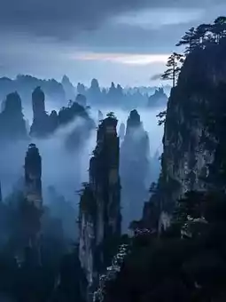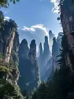 The prototype of Avatar's floating mountains! Take the Bailong Elevator straight into the clouds 🚠. From the Enchanting Platform, marvel at the knife-like stone peaks. As the mist brushes past your fingertips, it feels like touching an alien civilization.