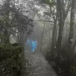 🚶♂️Follow the East Line route that goes along the cliff side going clockwise that takes you halfway around the mountaintop. From here, either continue along the cliff side along the West Line, or alternatively pay an additional charge to take the Forest Sightseeing Cable Car (25/13 yuan) that cuts across the mountaintop.
