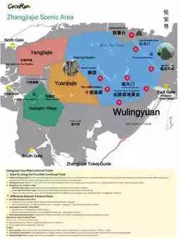 Figure 2: Ticket guide for Zhangjiajie Forest Park and distribution of major attractions