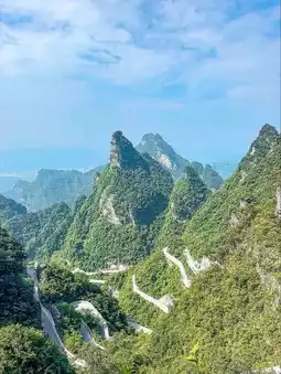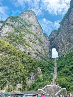 Tianmen Mountain (天门山) is a famous mountain in Zhangjiajie, Hunan Province, China. Its name means “Heaven’s Gate Mountain” because of its huge natural rock arch — a giant hole in the cliff that looks like a gateway to the sky.